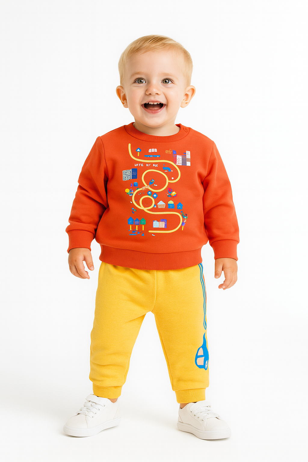 Conjunto alegre y lleno de energía para que tu peque disfrute con estilo en sus juegos diarios.