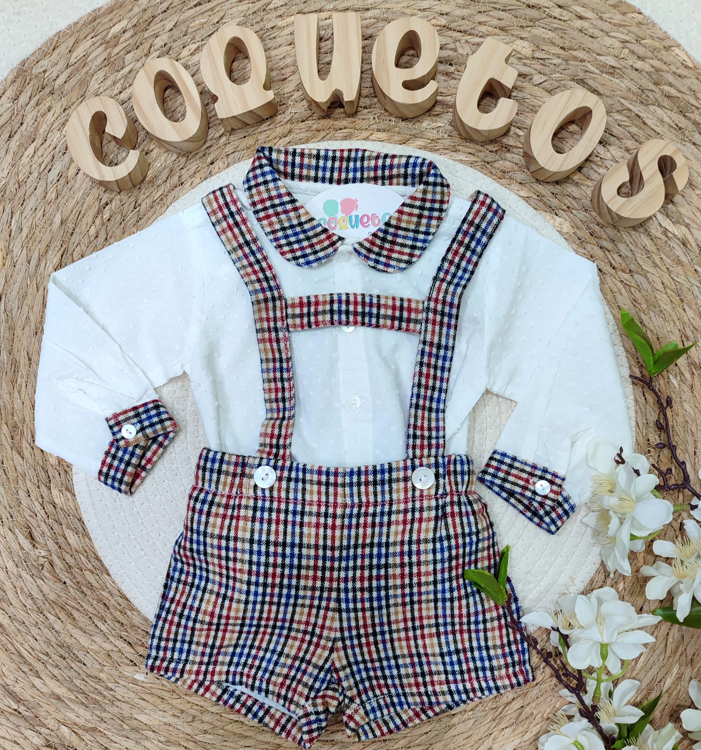 Conjunto clásico y encantador para que tu peque luzca elegante y cómodo en cualquier ocasión.