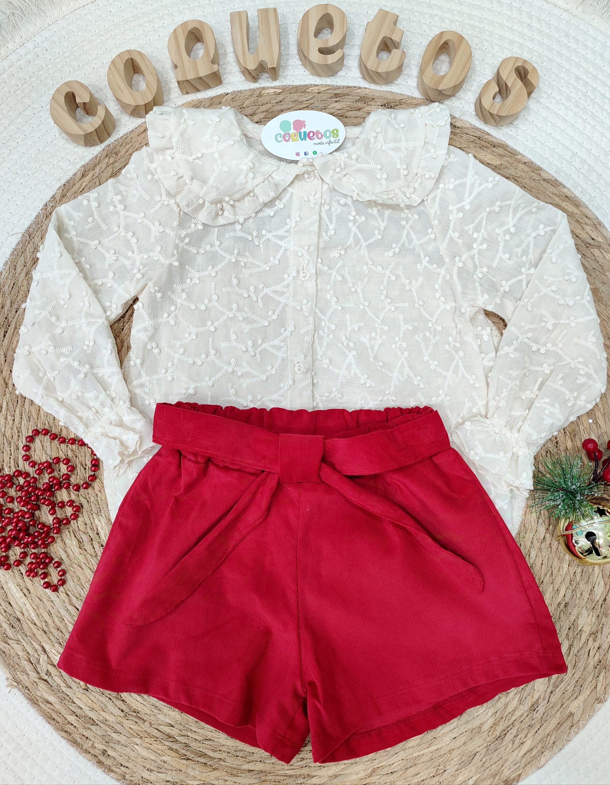 Conjunto encantador que combina elegancia y un aire festivo, ideal para que tu peque luzca cómodo y con estilo en cualquier ocasión.
