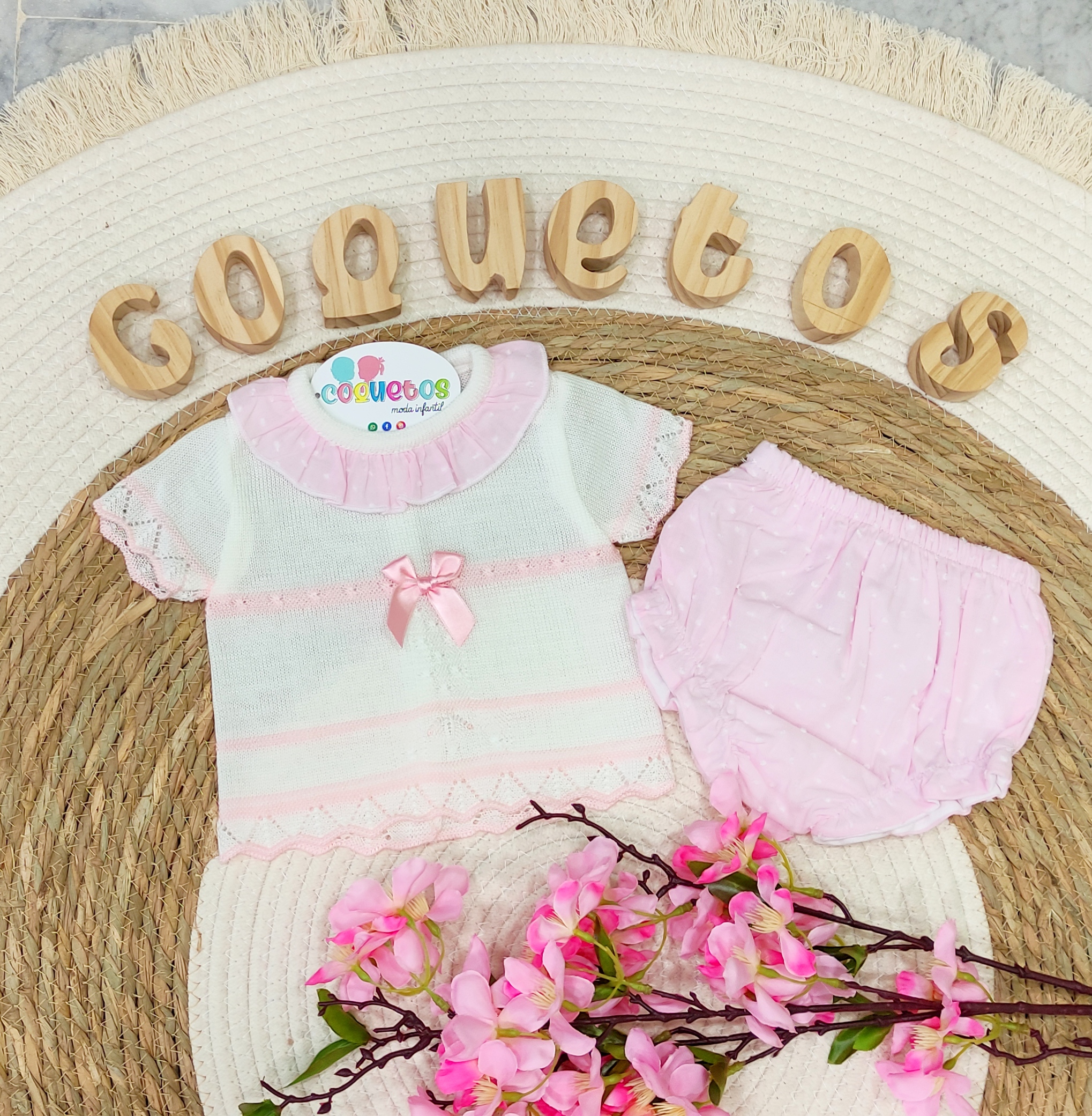 Este conjunto para bebé niña de punto fino es ideal para los días cálidos.