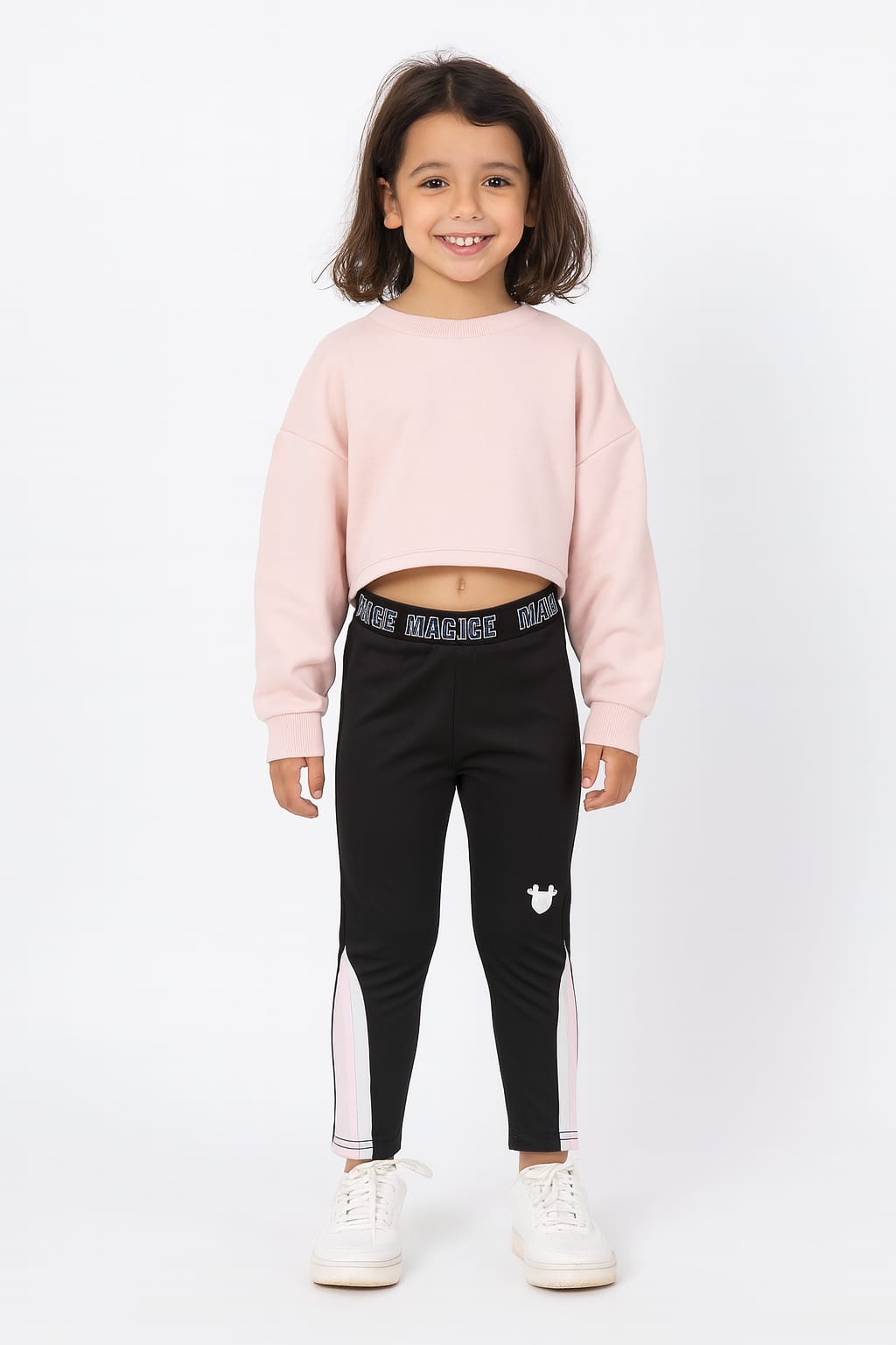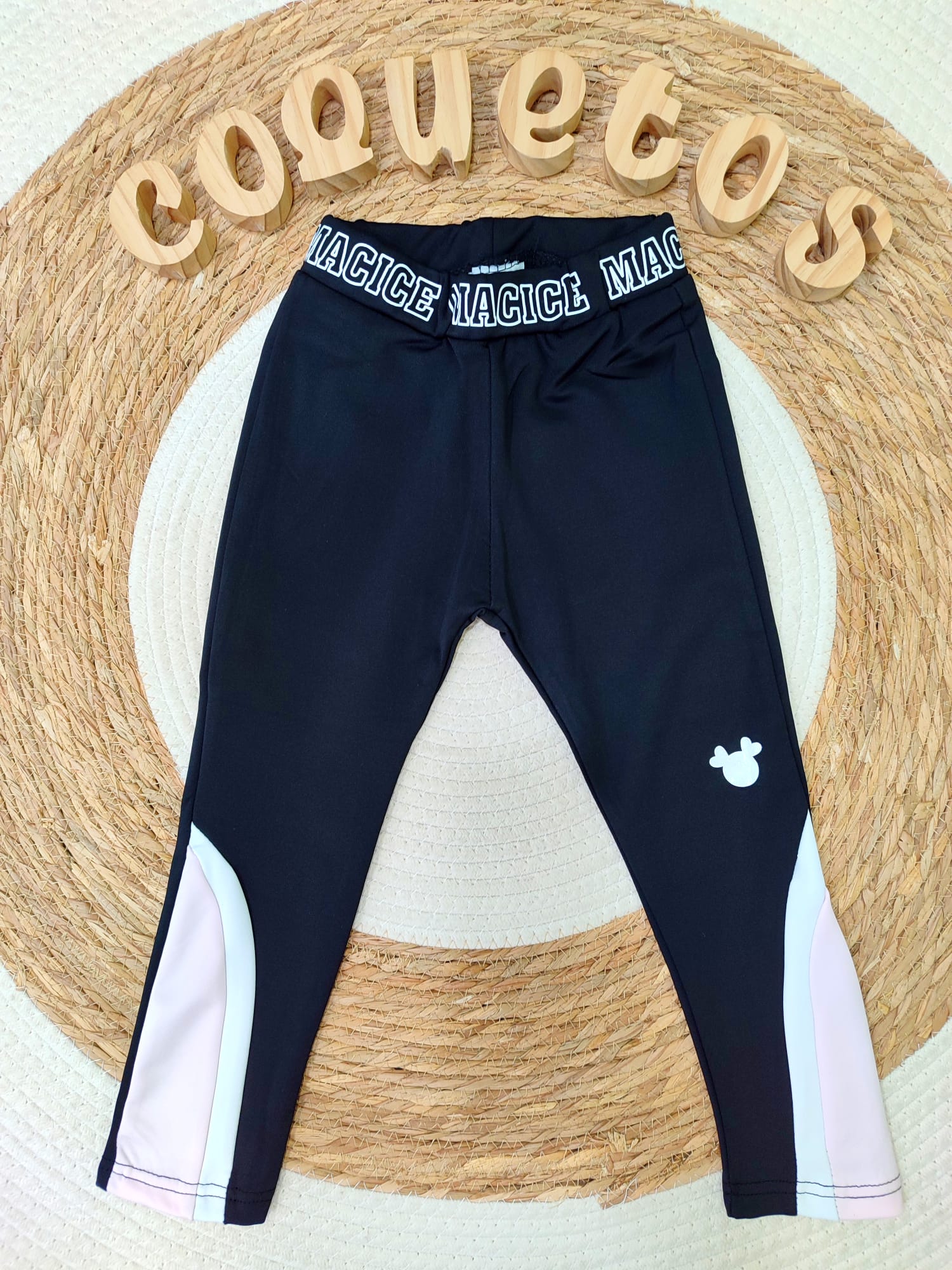 Malla deportiva de Minnie negra con detalles en rosa y blanco, cómoda y versátil para los peques más activos.